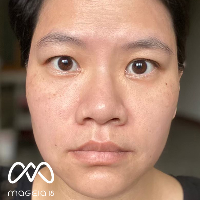 在接觸Mageia18產品後,使用短短兩週,我的膚色明顯白了一度,臉頰上的小斑點也淡化了許多,加上肌膚的水分補上了,洗完臉後,都能馬上感受到臉上的光澤。我每天認真地觀察肌膚變化,感覺真的每天都不一樣,就像乾枯的大地有了豐雨的滋潤,代謝、修護、光澤、白晰、紅潤,這些變化一直都是視覺可見,最重要的是使用起來超・輕・鬆。