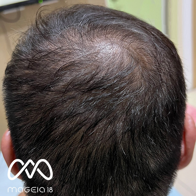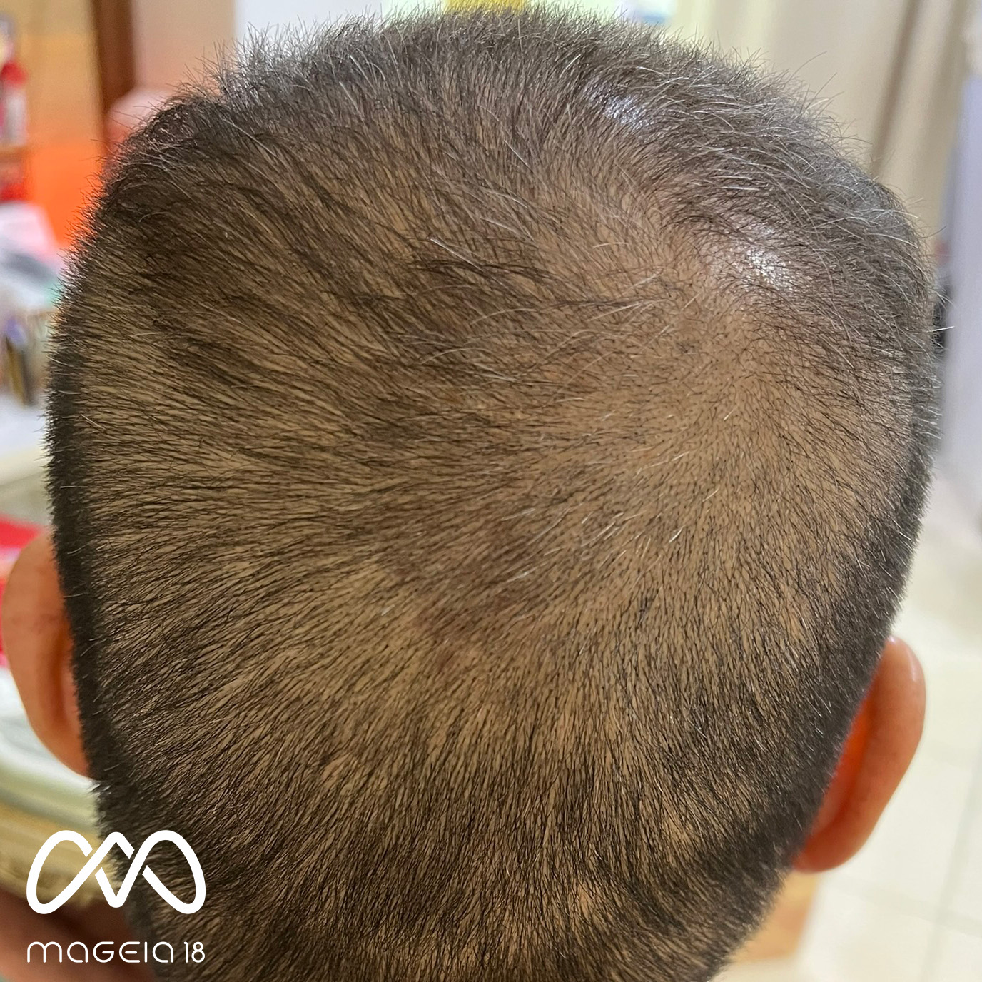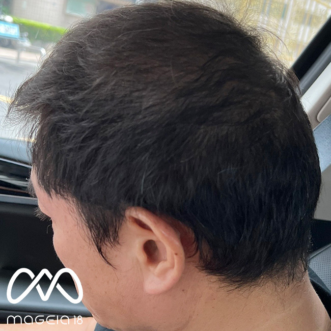 恰巧我的好朋友,同時也是萬欣生技創辦人的陳美琪董事長開發了Mageia18產品,問我願不願意成為他的第一位「見證者」體驗這套高科技產品的效果,我二話不說就答應。經過陳董事長的指導,我在使用了三次產品後,發現髮質似乎不像之前一樣細軟,感覺粗黑許多,整體看起來已經不像之前那樣空洞,而且新生出來的頭髮也很健康,就算偶爾忙到忘了使用產品,好轉情況依然有增無減,讓我既意外又開心!